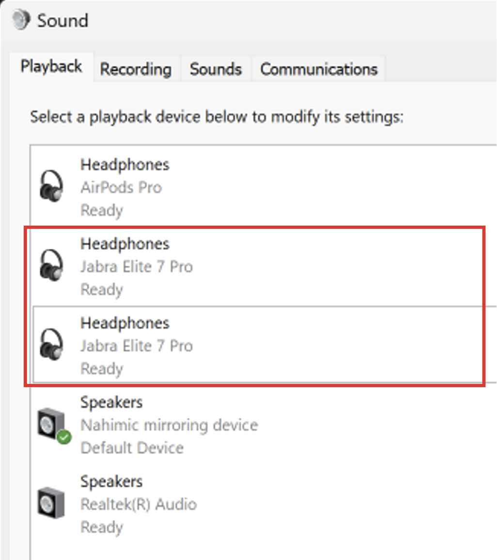 In these specific cases, when you connect two Bluetooth headsets you might observe the second headset will have two different output devices in Windows device list, one from Intel and one from Microsoft driver, as you can see on the image below: