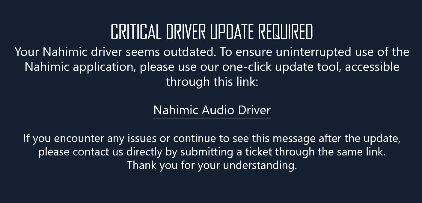 In order to update Nahimic driver, please launch the attached tool that will process to detect your hardware, check your system updates, clean and install everything needed to get Nahimic working again with latest driver update.